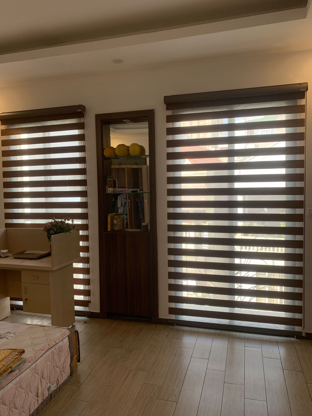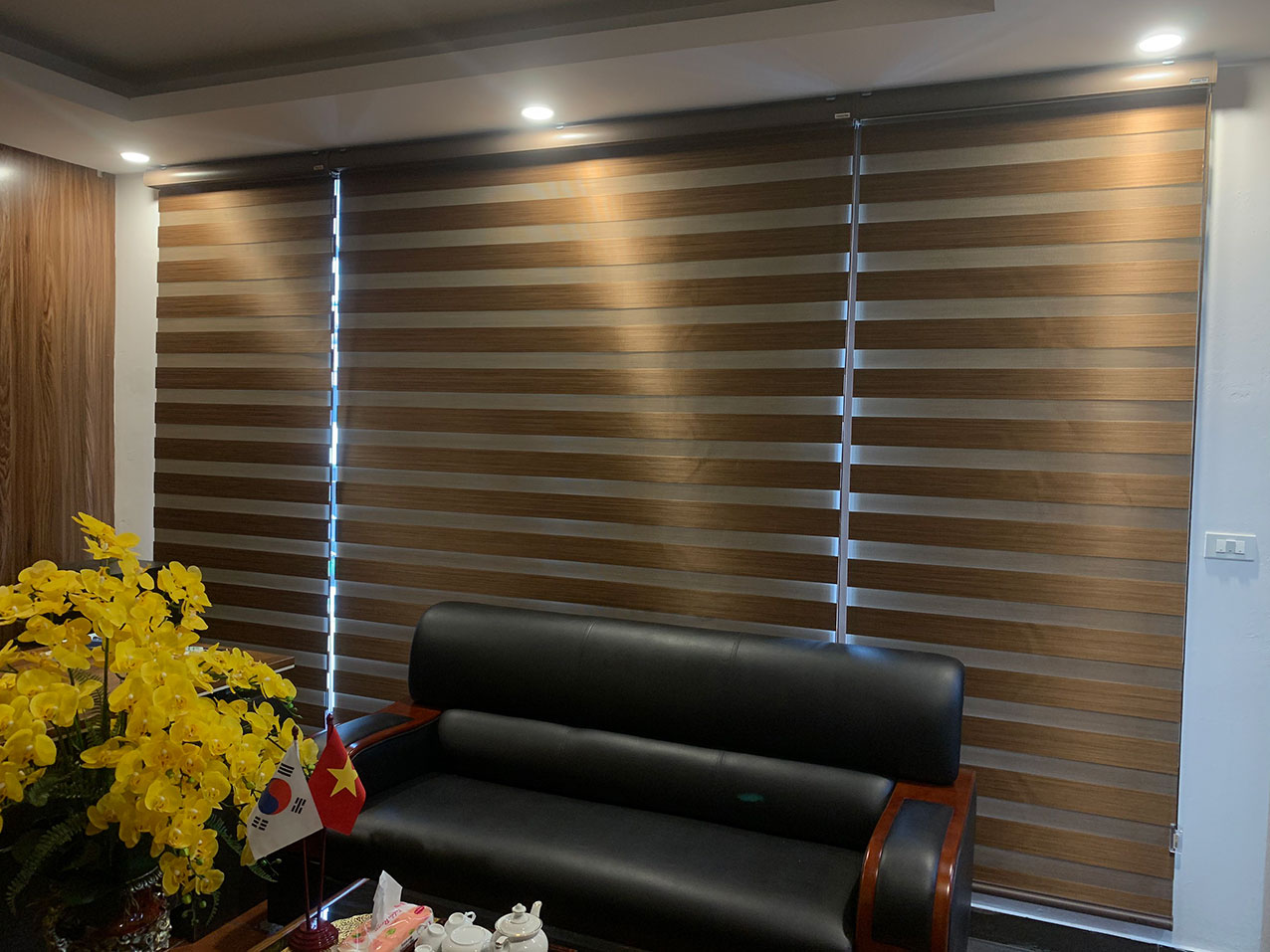 - Rèm cầu vồng có thiết kế đơn giản gồm 2 lớp vải xen kẽ nhau: vải kín chống nắng và vải lưới. Khi sử dụng, 2 lớp vải này sẽ tạo ra những khoảng sáng tối đan xen giúp điều tiết lượng ánh sáng vào phòng một cách linh hoạt.